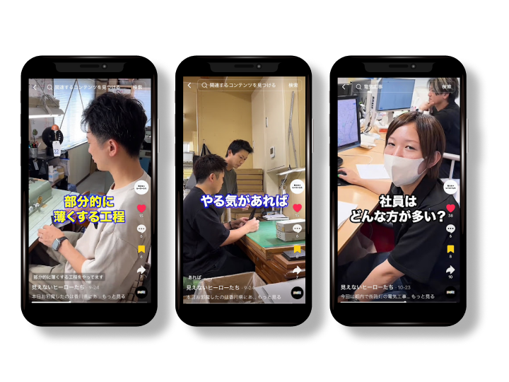 企業の採用ブランディングを、SNSの力で支援します。TikTokやInstagramを中心に、若年層に響く企画・運用・分析まで一貫してサポート。企業の想いや働く人の魅力を、自然に「伝わる形」で発信していきます。